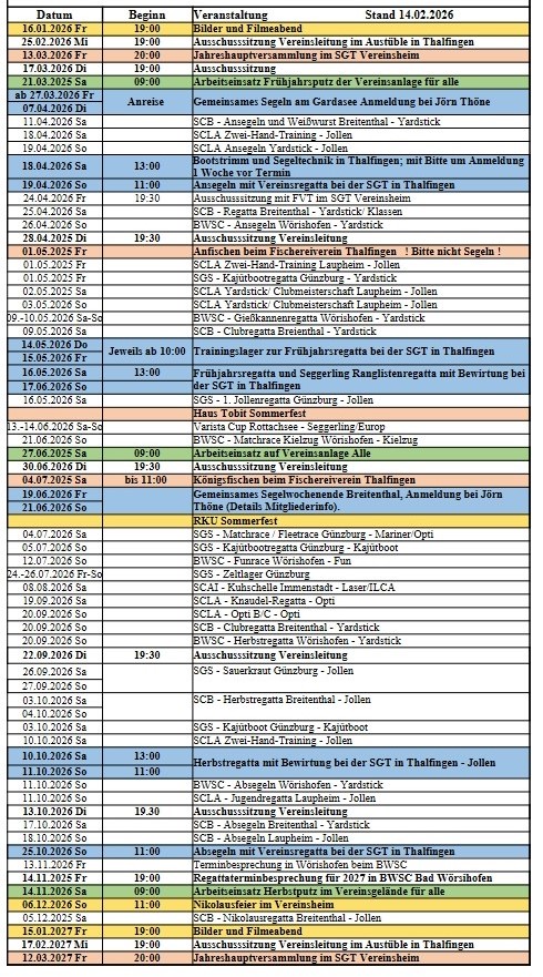 Jugend-Training und Segler-Treff mit Grillen jeden Dienstag ab 17 Uhr (vom An- bis zum Absegeln außerhalb der Ferien in Bayern)